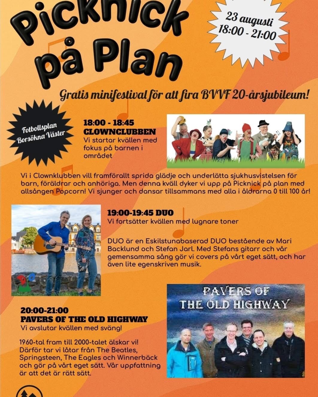 Vi bjuder in till en lokal minifestival under namnet Picknick På Plan – en kväll fylld av musik, gemenskap och glada sommarkänslor.